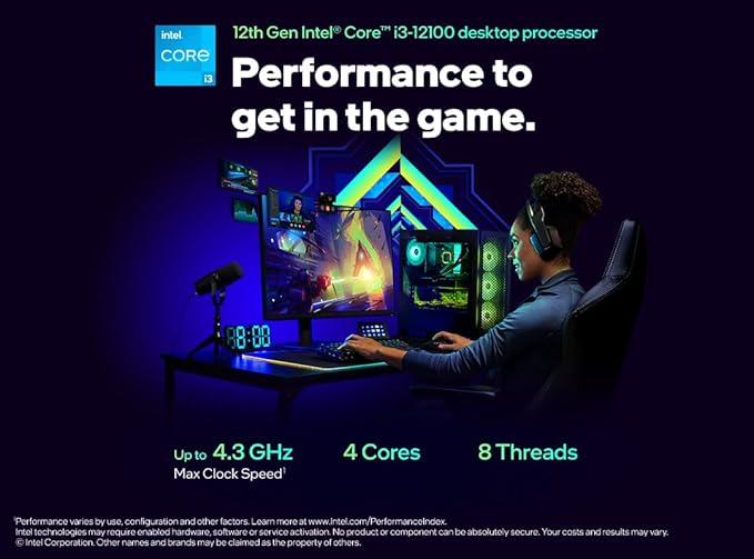 The Intel Core i3-12100 features 4 performance cores and 8 threads, making it capable of handling multitasking workloads such as web browsing, office applications, streaming, and light gaming. With a maximum turbo frequency of up to 4.30GHz, the processor ensures smooth system performance and quick responsiveness during demanding tasks.