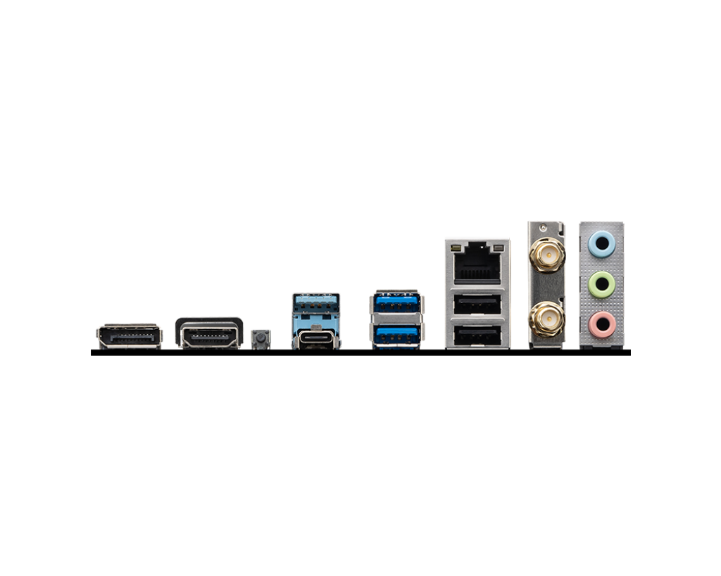 1 x USB 3.2 Gen 2 Type-C® Port (10Gbps) 2 x USB 3.2 Gen 2 Type-A Ports (10Gbps) 4 x USB 3.2 Gen 1 Type-A Ports (5Gbps) 1 x HDMI™ Port 1 x DisplayPort™ 1 x 2.5Gb Ethernet (RJ-45) Port 1 x Wi-Fi 6E Antenna Connectors (2T2R) 3 x Audio Jacks 1 x BIOS FlashBack™ Button